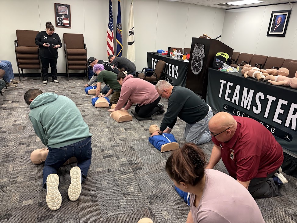 Local 776 conducted two life-saving skills training seminars for the membership on March 7, 2026. With training provided by Safety Ace, all participants now have the skills to assist and intervene in an emergency. The members were trained and certified in CPR (Cardiopulmonary Resuscitation) and AED (Automated External Defibrillator) emergencies.