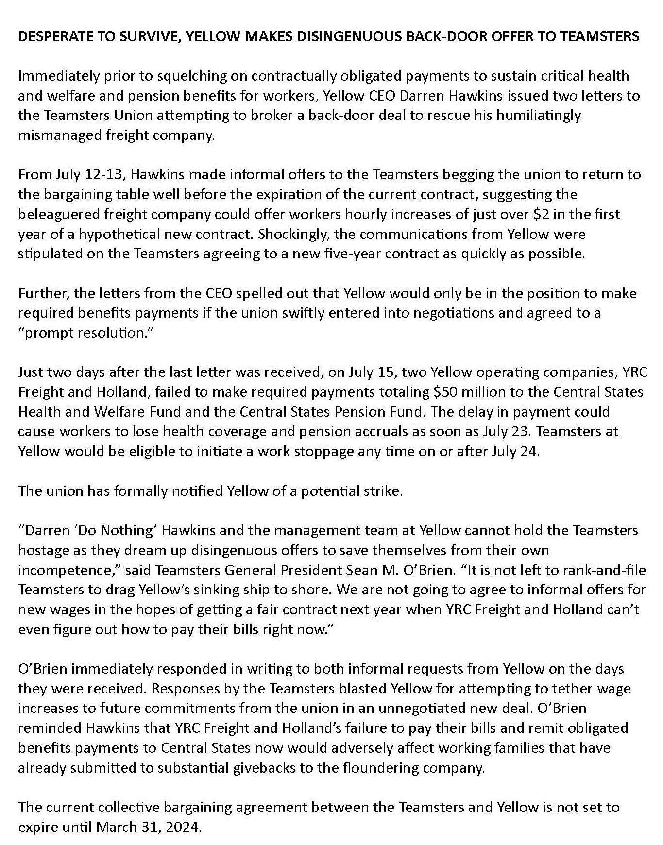 “Teamsters at TForce Freight know what it takes to win at the table. They have spoken loud and clear that they are ready to take on this company if they don’t get the best agreement possible,” said Teamsters General President Sean M. O’Brien. “Our members are the backbone of this company and essential to keeping the nation’s supply chain moving. They deserve to be rewarded with a contract that reflects their value.”