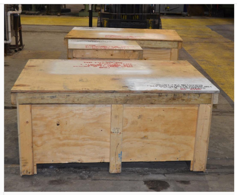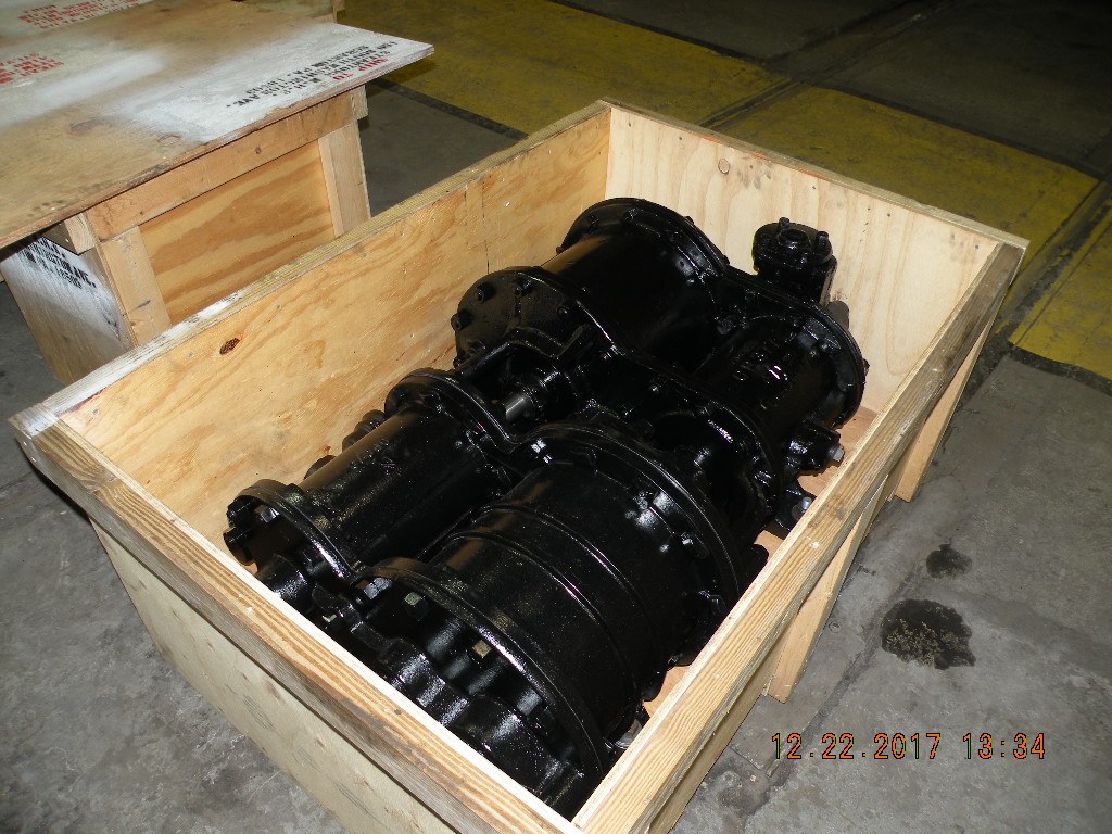 Inside the boxes are #3713's two NYAB cross compound air compressors, the Sunbeam dynamo, and the air compressor governor. All have been rebuilt and are ready to be used when the locomotive is reassembled.
