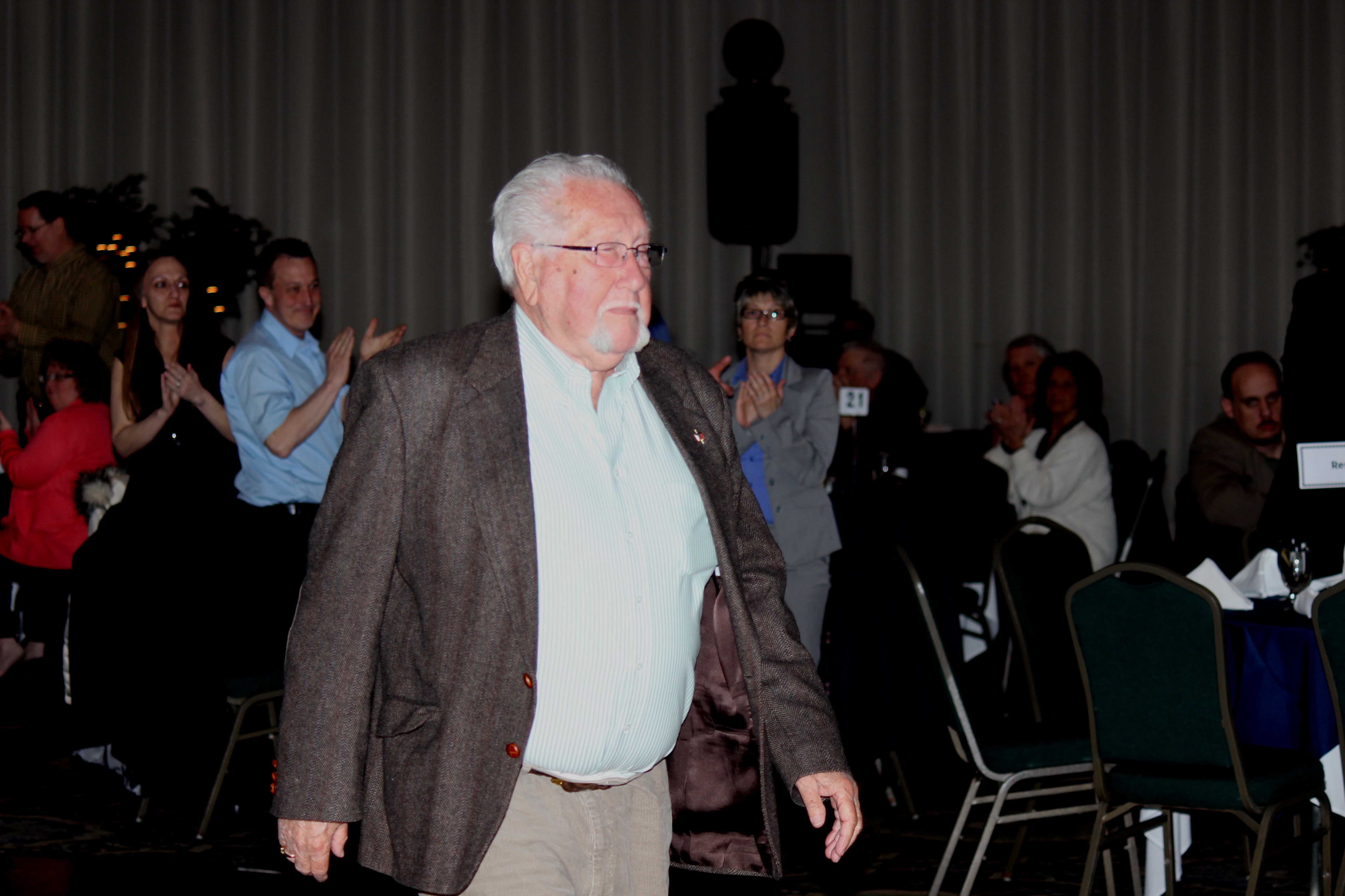 Walking proud to the podium amidst applause