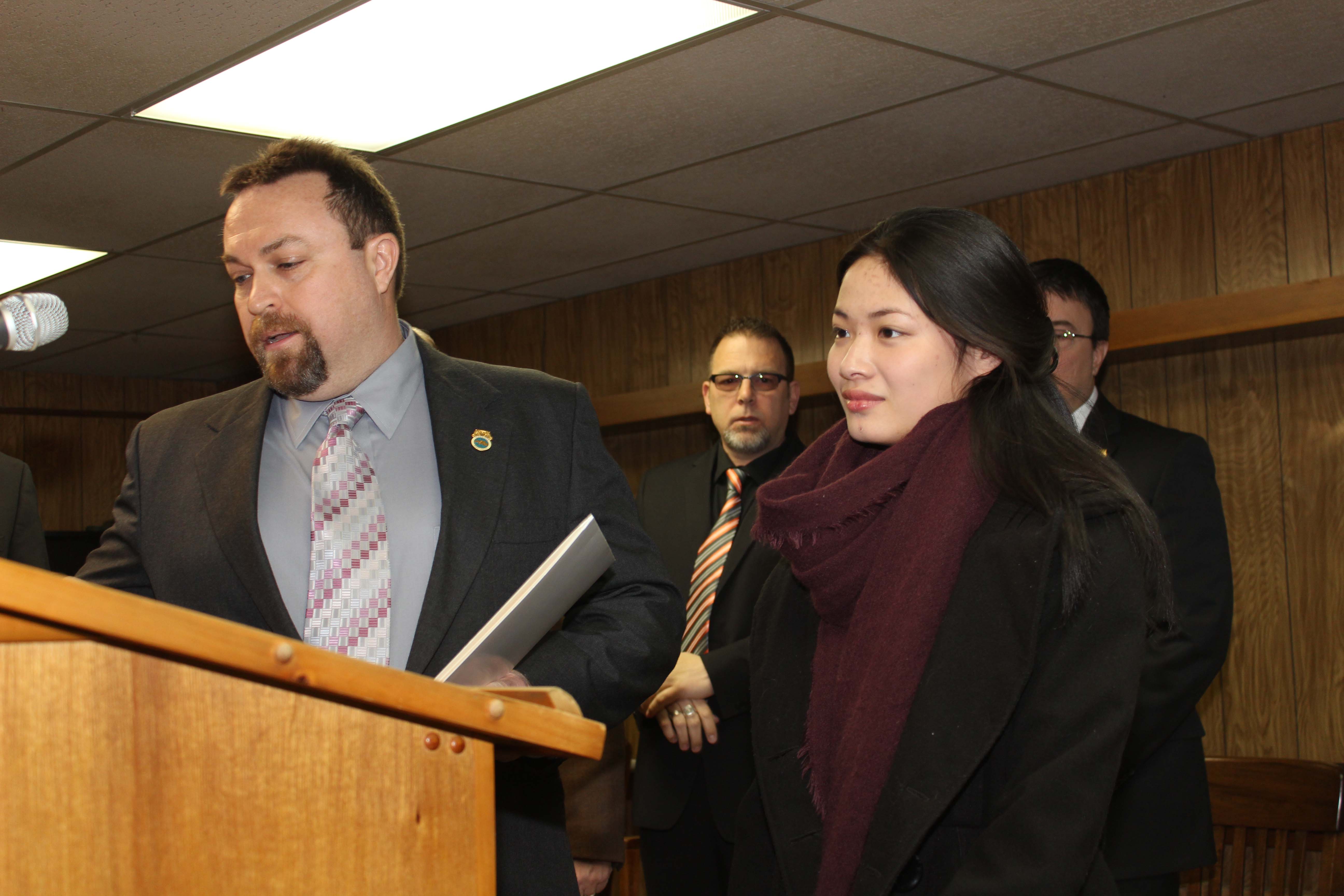 On Sunday March 8, 2015 Local 776 President Ed Thompson made a special presentation. Maura Vrabel, daughter of Local 776 member Richard Vrabel, was presented with a JR Hoffa Memorial Scholarship. Maura, a freshman at Notre Dame University who is majoring in chemical engineering, thanked the Teamsters for selecting her as a finalist. Richard, a member of the Local Union for 16 years is a road driver at ABF Freight System.