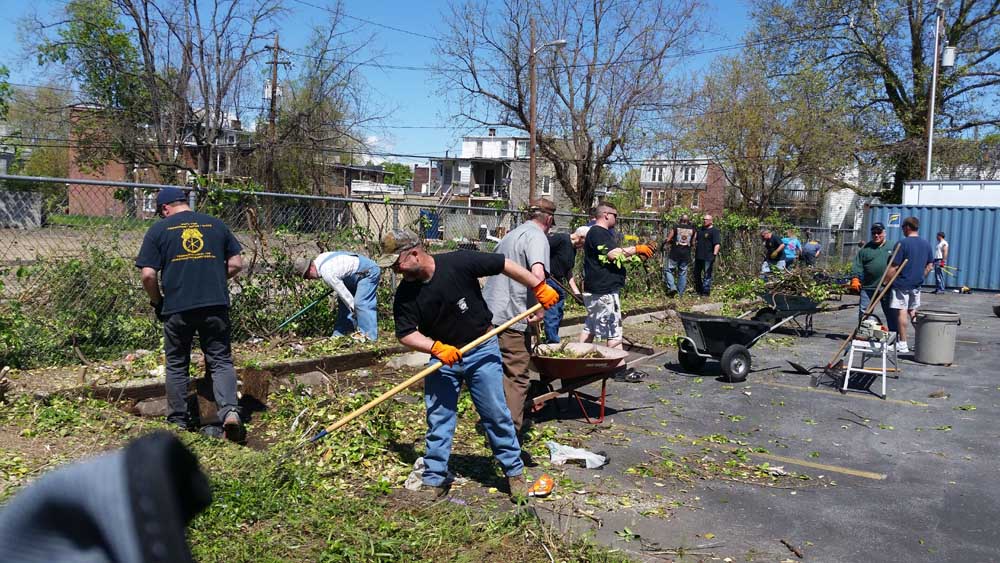 The quiet Saturday morning in the Union Hall’s neighborhood was broken on May 2nd by the sounds of hard working men, women, and machines. The scheduled Stewards meeting became spring clean up day for the grounds surrounding the Hall. Chain saws and trimmers took the place of contract books and grievance forms as the Officers and Business Agents, along with the Stewards, trimmed the bushes and trees surrounding the property that had become overgrown. They also removed a storage building that had been anchored to an outside wall of the Hall.