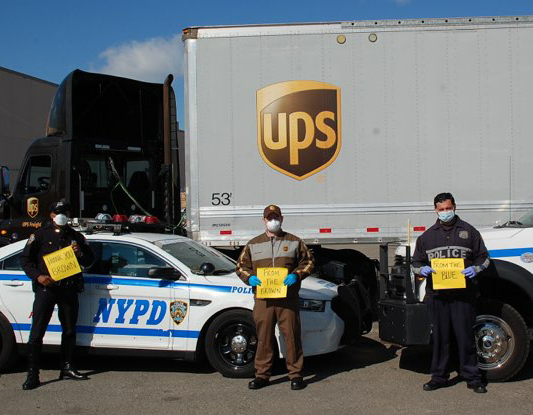 On Thursday, April 16, 2020, Local 776 Member William Bennett III, a nine-year veteran at UPS Freight, and a member of America’s Road Team (ATA), delivered another load of hand sanitizer to the New York City Police Department in Flushing, NY. In addition to that delivery several cases of sanitizer were given to the NYPD Highway Dept. by UPS as special thank you for their escort into New York City with these loads of hand sanitizer.